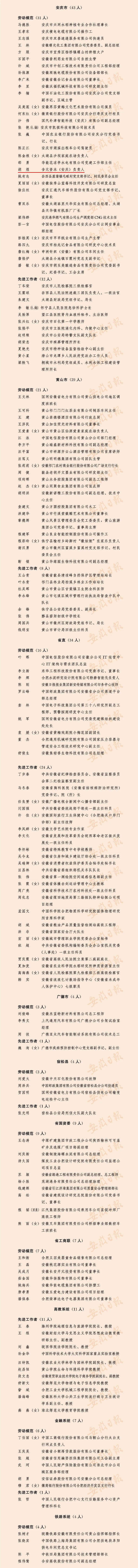 2022年安徽省勞動模范、先進工作者和先進集體名單