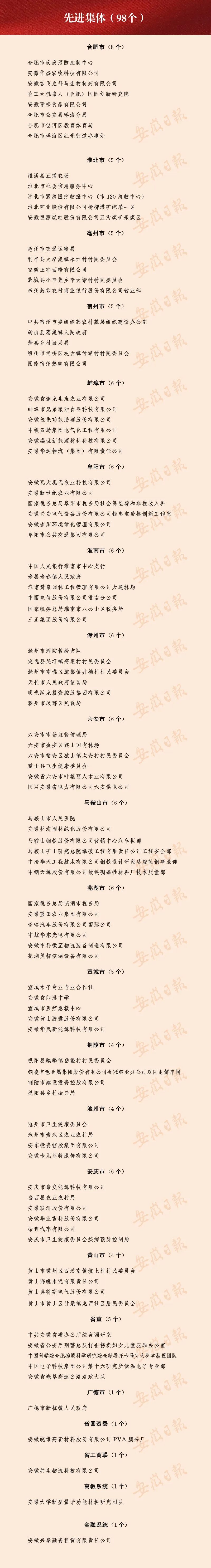 “安徽省先進集體”稱號。